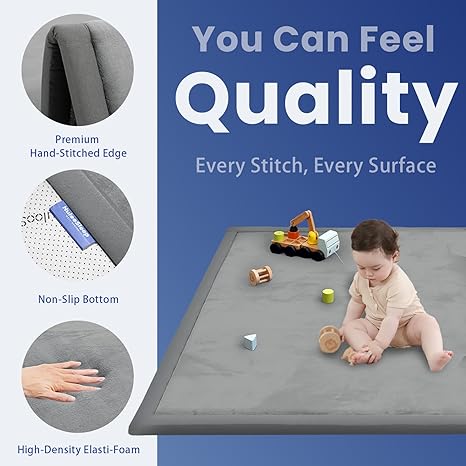 Extra Large 79"x158" Baby Activity Play Mat for Floor, 1.3" Thick Elasti Foam for Tummy Time & Crawling, Non-Slip Nursery Rug for Infants, Toddlers & Kids, Tatami Style Mat for Yoga, Living Room, Classroom & Playroom (Dark Gray)