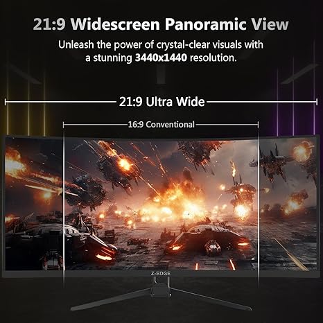 Z-Edge 34" Curved Gaming Monitor, WQHD 1440P 165Hz 144Hz PC Monitor, MPRT 1ms, 21:9 Aspect Ratio, 1500R, 16.7M Colors, 3000:1 Contrast, UG34 Frameless Bezel, 2X DP 1.4 Ports and 2X HDMI 2.0 Port