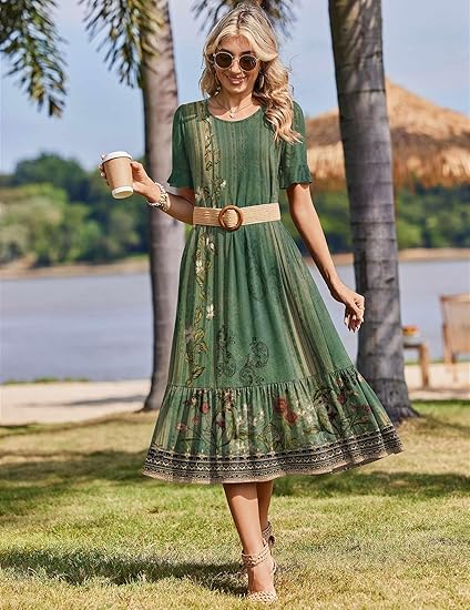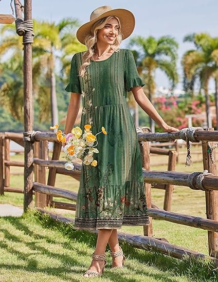 Zeagoo Womens Summer Dresses 2026 Casual Midi Dress Flowy Sundress Ruffle Short Sleeve Tiered Dresses A Line Boho Dress